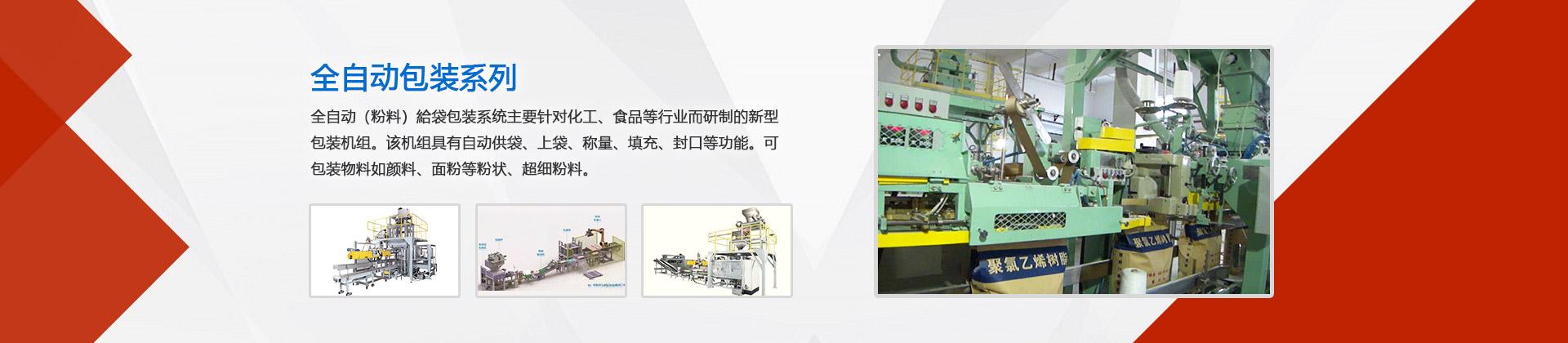 全自動(粉料)給袋包裝系統主要針對化工、食品等行業而研制的新型包裝機組。該機組具有自動供袋、上袋、稱量、填充、封口等功能。可包裝物料如顏料、面粉等粉狀、超細粉料。